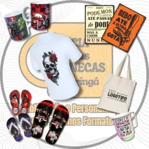 - Exemplos: Canecas, almofadas, camisetas (área de peito), mousepads, azulejos, chaveiros, chinelos.